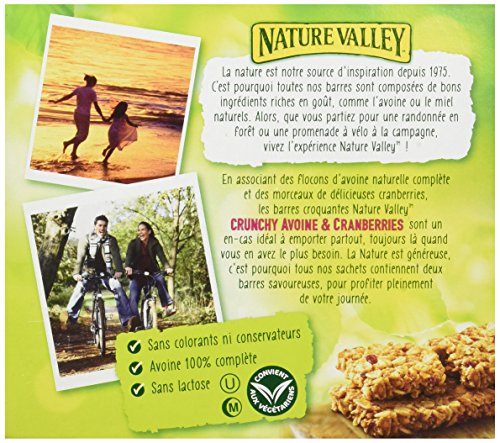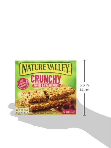 Nature Valley - Barres de Céréales Crunchy Avoine & Cranberries - Boite de 10 Barres de Céréales - Lot de 5 (50 Barres)