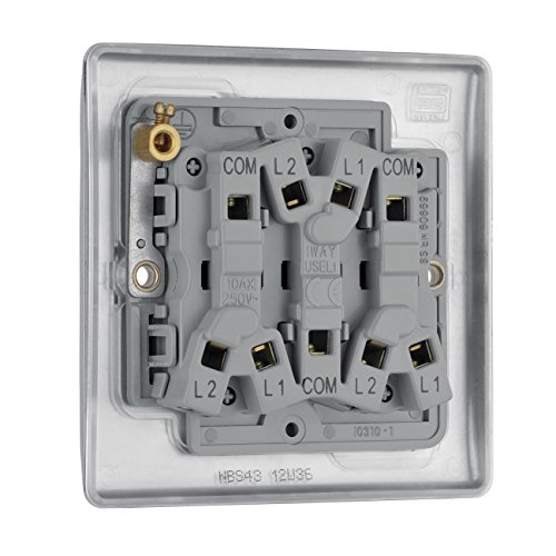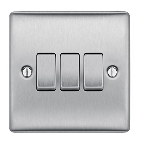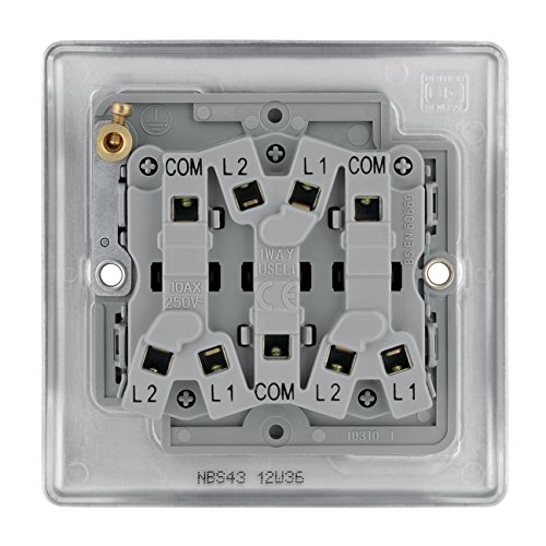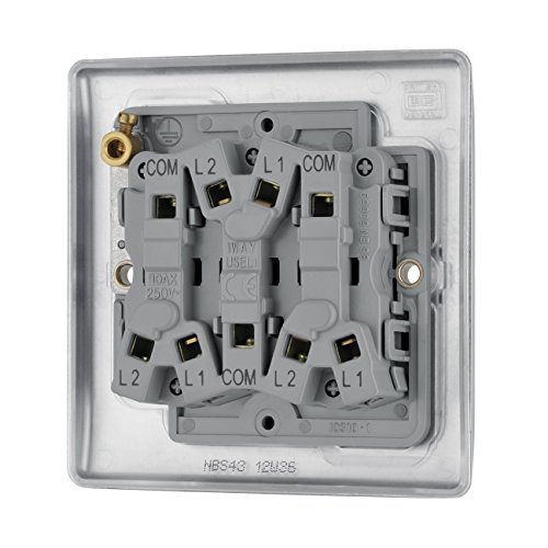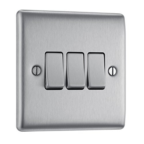 La gamme de interruttori claire 10 A, 10 AX Nexus métal ont un design élégant et fin avec coins légèrement arrondis et finition de haute qualité pour complimenter n'importe quel type de déco. Environ la même lumière interrupteur en plastique ne sont pas visibles et sont équipés de vis de couleur coordonnée. Le nbs43 a trois commutateur géré par deux façon, est facile à installer et peut être utilisé comme un remplacement direct pour interruttori ou existants de nouveau. La lumière est en acier brossé et a un revêtement laqué pour une longue durée et à limiter les signes d'empreintes digitales. Il est adapté pour les installations domestiques et commerciali. fait partie de la gamme de metal BG Nexus une gamme complète de produits disponibles en coordonné. 25 ans de garantie de la part du fabricant.