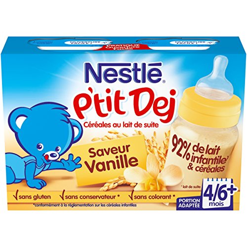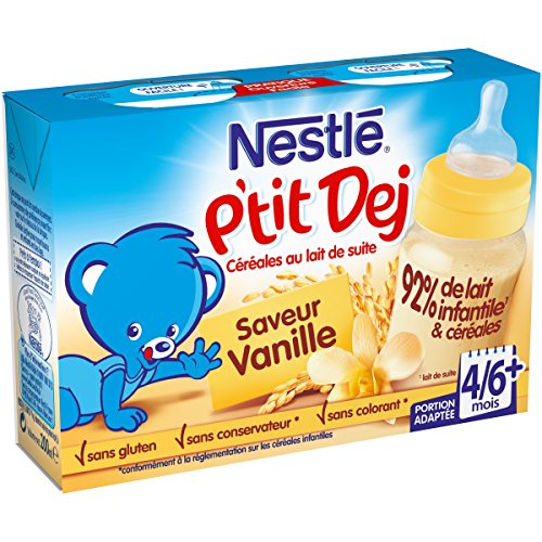 Nestlé Bébé P'tit Dej Saveur Vanille - Brique Lait & Céréales 4-6 Mois - 2 Briques de 200ml - Lot de 4