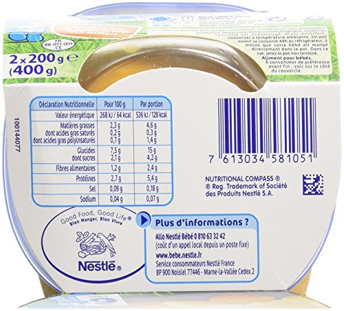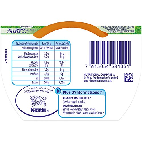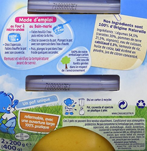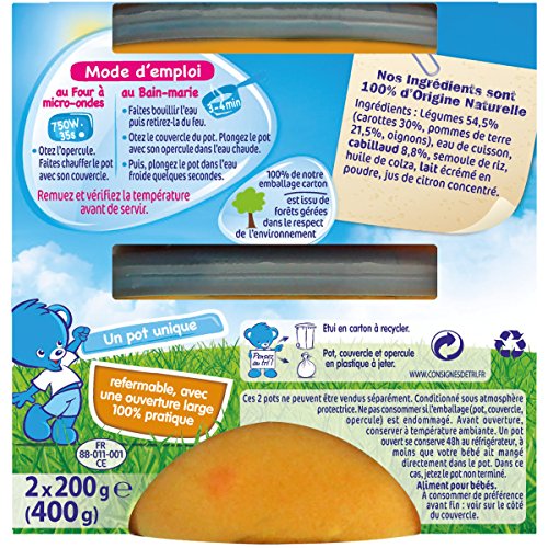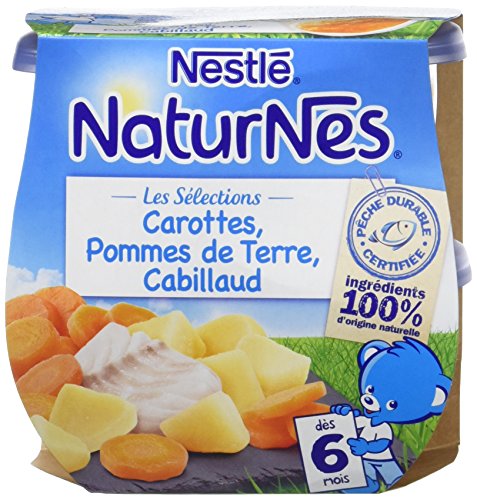 Nestlé Bébé Naturnes Carottes Pommes de Terre Cabillaud Plat complet dès 6 mois 2 x 200g - Lot de 6