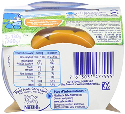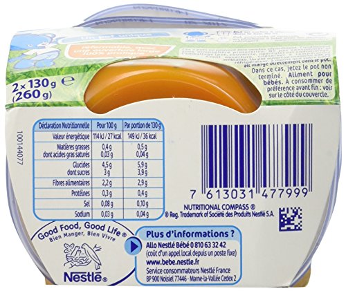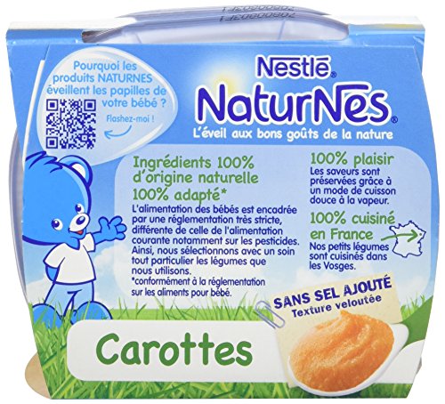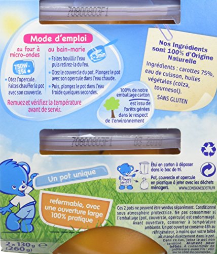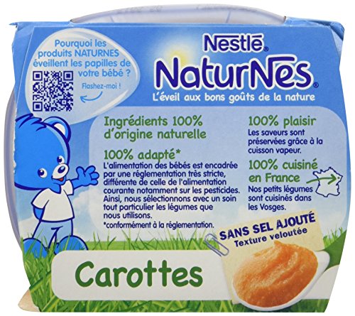 Nestlé Bébé Naturnes Carottes Purée de légumes dès 4/6 mois 2 x 130g - Lot de 6