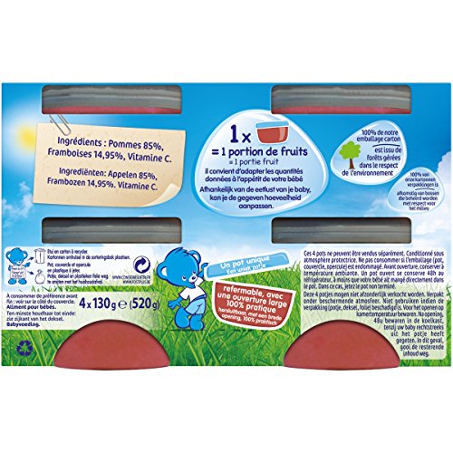 Nestlé Bébé Naturnes Pommes Framboises Compote dès 6 mois 4 x 130g - Lot de 3