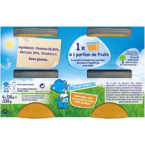 Nestlé Bébé Naturnes Pommes Abricots - Compote dès 4 - 6 Mois - 4 x 130g - Lot de 3
