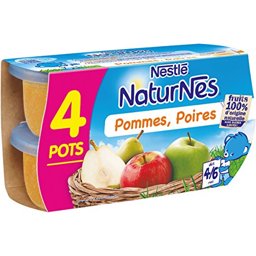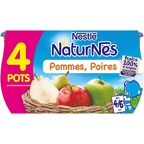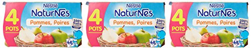 Nestlé Bébé Naturnes Pommes Poires - Compote dès 4 - 6 Mois - 4 x 130g - Lot de 3