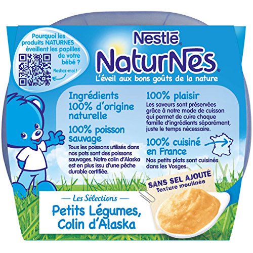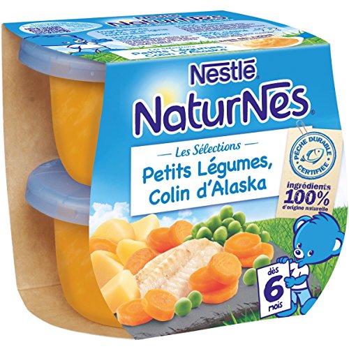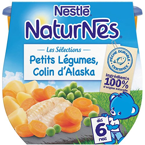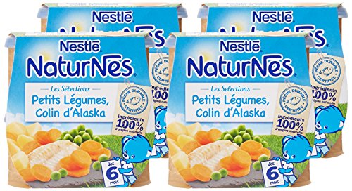 Nestlé Bébé Naturnes Les Sélections Petits Légumes Colin d'Alaska - Plat Complet dès 6 Mois - 2 x 200g - Lot de 4