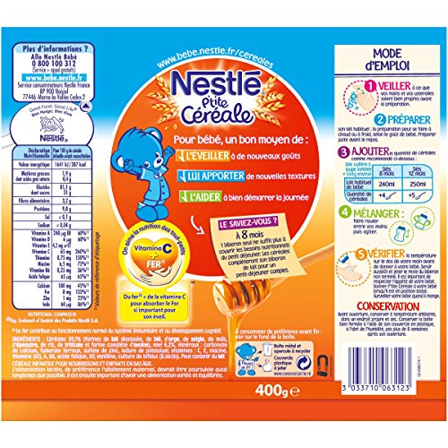 Nestlé Bébé P'tite Céréale Miel dès 8 mois 400g - Lot de 4 boites de 400g