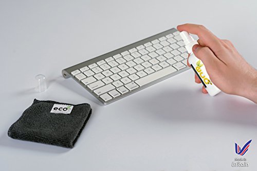 Ecomoist Natural Nettoyeur de Clavier. 250ml est livré avec de haute qualité en microfibre serviette. Meilleur pour Claviers, souris, tapis, joysticks, consoles de jeux, etc. Tue 99,99% de tous les germes. Produit vert. Fabriqué en Angleterre