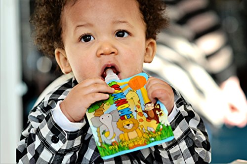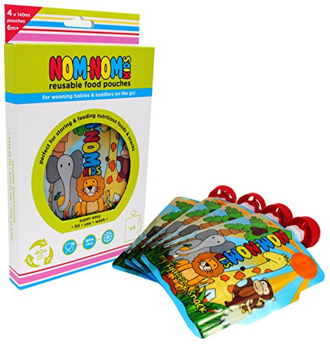 Lot de 4 Nom Nom Kids ANIMAL Gourdes Réutilisables pour compotes et purées 140ml, Sans BPA, Compatibles Congélateur et Lave Vaisselle