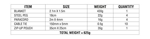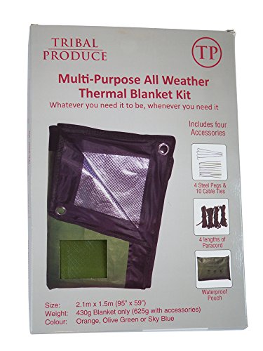 TOUTES SAISONS Avez-vous déjà eu trop froid ? Trop chaud ? Avez-vous déjà eu besoin de vous abriter du sol, de la pluie, du vent ou du soleil ? Alors la nouvelle couverture thermique Tribal Produce est faite pour vous. Avez-vous déjà essayé de vous protéger avec une couverture mais que celle-ci était soulevée par le vent ou finissait pas tomber ? Dans ce cas, notre kit de couverture thermique est définitivement fait pour vous ! . QUALITÉ SUPÉRIEURE Cette couverture dispose d'un revêtement imperméable et coupe-vent, et d'une feuille d'aluminium réflectrice de chaleur sur l'envers, qui permet de retenir 90% de la chaleur corporelle. Elle et solide et résistante, tout en étant souple, et dispose de six œillets renforcés. . COUVERTURE GRANDE TAILLE Notre Couverture Thermique est grande - 2,1m sur 1,5m. Deux personnes peuvent dormir confortablement dessus, et elle peut aussi être utilisée comme nappe de pique-nique pour toute une famille. C'est 430g - suffisamment lourde pour être une véritable couverture, mais encore suffisamment légère pour l'emporter avec vous. Elle se plie facilement pour être rangée, avec les piquets et la paracorde pour un poids total de 620g. La sacoche étanche et anti-salissante permet de garder votre voiture ou votre sac, propre et sec. . LA COUVERTURE LA PLUS SOUPLE DU MARCHÉ Notre couverture est la couverture la plus souple du marché. Grâce à ses six œillets renforcés, ses quatre piquets en aciers et ses quatre longueurs de 2m de paracorde de diamètre 4mm, elle est conçue pour faire face à toutes les situations. Attachez-la à un poteau, un arbre, au sol, à votre voiture ou à votre sac à dos. Couverture d'urgence, abri instantané, nappe de pique-nique, sac de couchage, tapis de sol, pare-soleil ou réflecteur solaire etc. Utilisez-la pour vous protéger, pour protéger votre famille, votre animal ou votre voiture ! Si vous n'utilisez pas notre couverture au cours de l'année, nous vous remboursons !