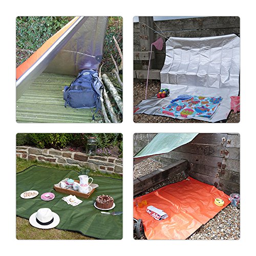 - RÉSISTANTE, AVEC SIX OEILLETS RENFORCÉS (plus que les autres couvertures disponibles sur le marché). Grande taille, pouvant accueillir deux personnes - 2,1m sur 1,5m, mais légère, et peut être pliée et rangée dans une petite sacoche. Résistante à l'eau, au sable et à la poussière