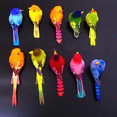 - Pack de 10 petits oiseaux en mousse aux couleurs vives avec aimant pour décoration et création.
