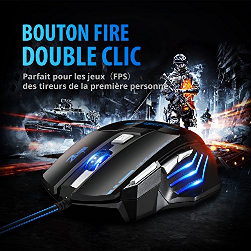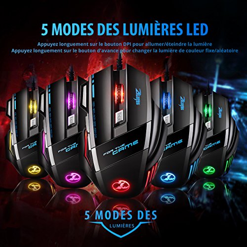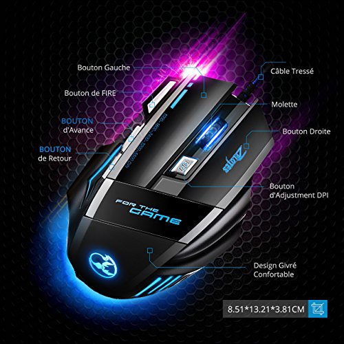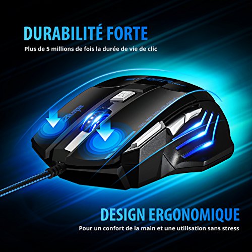 [5500 DPI Souris de Jeu LED Optique] VicTsing Zelotes 7 Boutons Souris Gaming Filaire Profesionnel Gaming Mouse USB avec 5 Niveux DPI Réglable Souris Filaire pour Pro Gamer