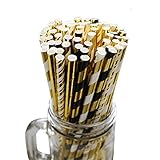 Lot de 25pcs Pailles Papier Motif Doré Décor...