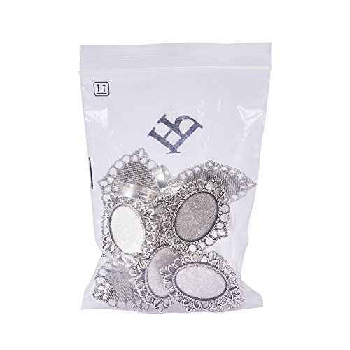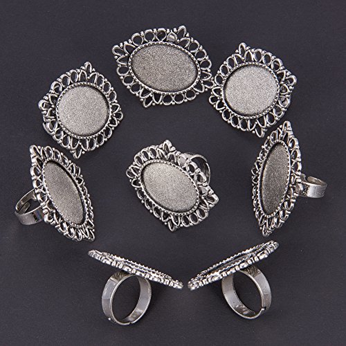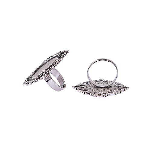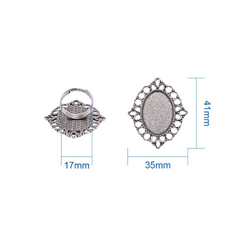 PandaHall - Lot de 10 pcs Vintage Reglable en Fer Fleur Anneau de Doigt Composants en Alliage Cabochon Reglable, Argent Antique, Ovale Plateau: 18x25mm; 17mm