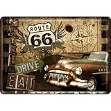 PLAQUE METAL US ROUTE 66 - VOITURE GOLD -...