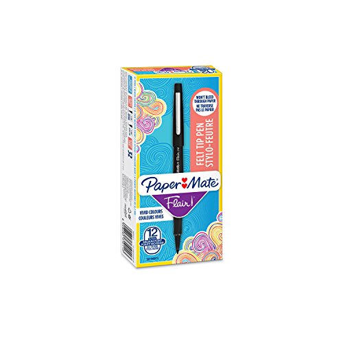 - Boîte contenant 12 stylos feutres noirs Paper Mate Flair à pointe moyenne
