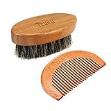 Brosse à Barbe, Barbe Peigne, IZUKU Barbe Kit 2 pcs d'entretien Cadeau Premium avec Petit Sac, Brosse en Bois et Soie de Sanglier, Kit Complet Barbe Pour Homme