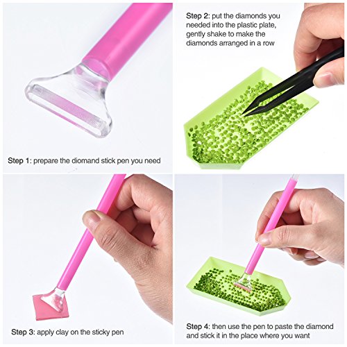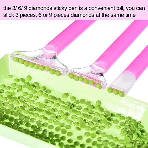 - Stylo collant diamant: pour la même couleur dans une grande zone de travail collant de diamants, le stylo collant 3/6/9 diamants est un péage pratique, vous pouvez coller 3 pièces, 6 ou 9 pièces de diamants en même temps