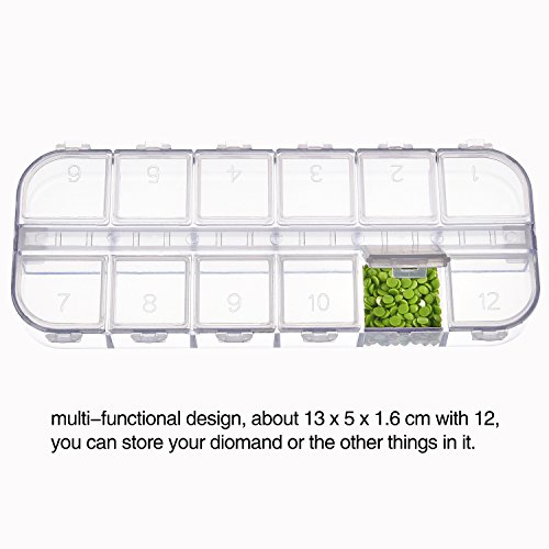- Boîte de broderie de diamant: conception multi-fonctionnelle, environ 13 x 5 x 1,6 cm avec 12 compartiments, vous pouvez l'utiliser pour stocker votre diamant de peinture ou d'autres petits articles que vous aimez