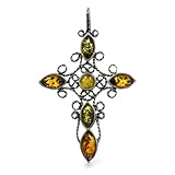 Ambre Multicolore Argent Sterling Croix Pendentif