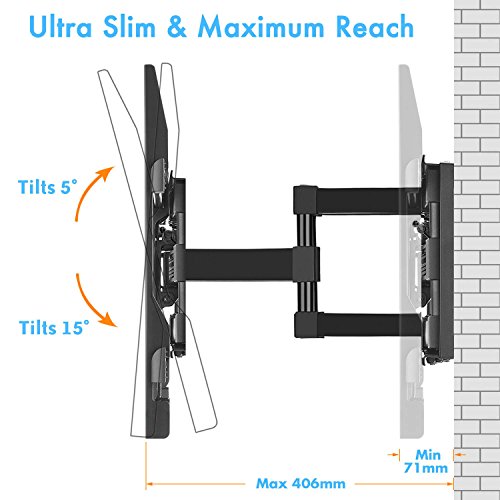 - ÉCONOMISER DE L'ESPACE - Ce support muraux TV se rétracte jusqu'à seulement 71mm (2.8'') du mur pour économiser de l'espace et peut aussi s'écarter jusqu'à 40cm (16'') pour s'ajuster à vos besoins. Il vous libère de l'espace tout à la fois qu'il donne une apparence soignée et ordonnée à votre maison.