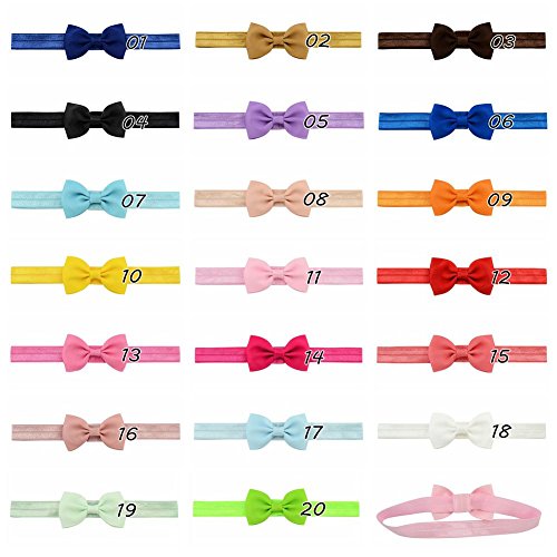 Enuo 20pcs petites filles Hair Bow Hair Bands Bandes élastiques avec Hair Bow Bandeau bébé Pour les tout-petits