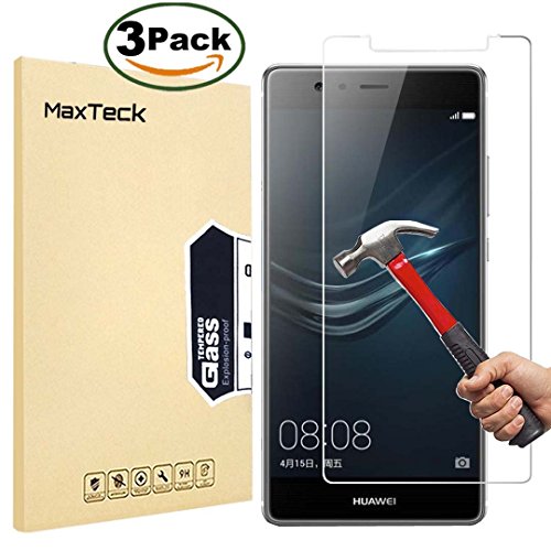 [3 Pièces] Verre Trempé Huawei P9, MaxTeck Film Protection en Verre trempé écran Protecteur Vitre- ANTI RAYURES - SANS BULLES D'AIR -Ultra Résistant Dureté 9H pour Huawei P9