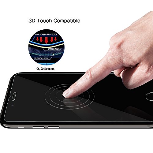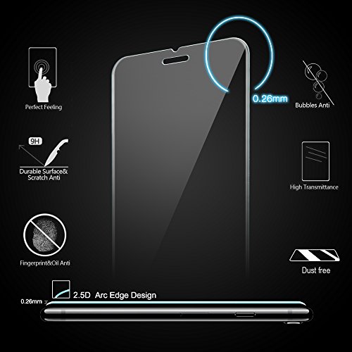 - Remarque: C'est parce que l'écran de iPhone 6/6s est avec les bordures incurvés, donc le protecteur ne recouvre pas complètement l'écran, mais seulement la zone plate. Il est fabriqué en verre trempé premium de haute qualité avec l'épaisseur de 0.26 mm et des bordures arrondis, est exclusivement pour iPhone 6/6s.