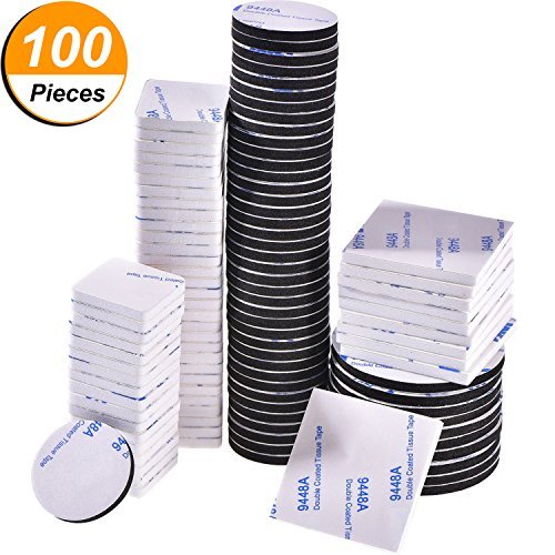 100 Pièces Ruban Mousse Double Face Adhésif Ruban de Montage Adhésif, Carré et Rond, Noir et Blanc