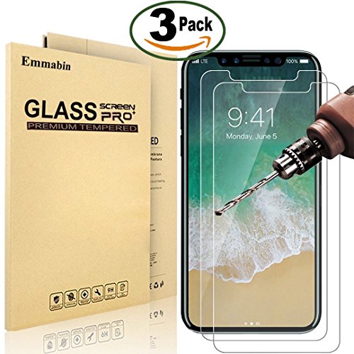 [3 Pièces] Verre Trempé iPhone X ( iPhone 10 ), Emmabin Film Protection en Verre trempé écran Protecteur Vitre - Ultra Résistant Dureté 9H pour iPhone X ( iPhone 10 ) - Compatible 3D Touch