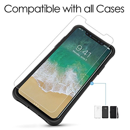 - Remarque: C'est parce que l'écran de iPhone X ( iPhone 10 ) est avec les bordures incurvés, donc le protecteur ne recouvre pas complètement l'écran, mais seulement la zone plate. Il est fabriqué en verre trempé premium de haute qualité avec l'épaisseur de 0.26 mm et des bordures arrondis, est exclusivement pour iPhone X ( iPhone 10 ).