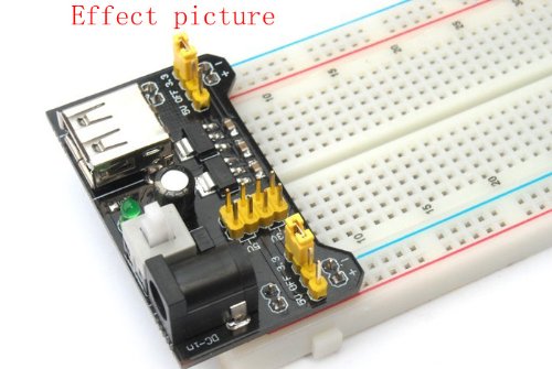 - Pour le jury de pain MB102 ; compatible avec 5V, 3.3V ; Tension d'entrée : 6,5-12V (DC) ou alimentation USB ; Tension de sortie: 3, 3V, 5V commutable ;