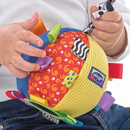 - un son à l'intérieur se déclenchant dès que la balle est en mouvement (attrapée, secouée, jetée) pour permettre le développement de l'ouïe et des facultés motrices