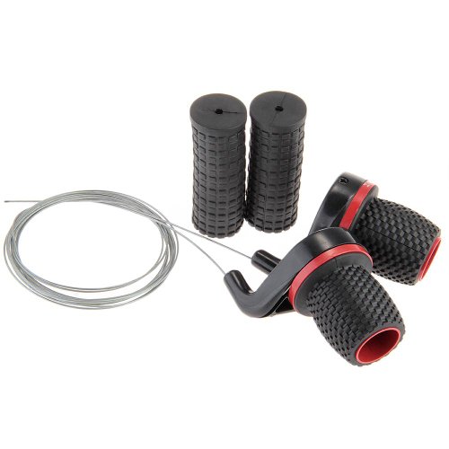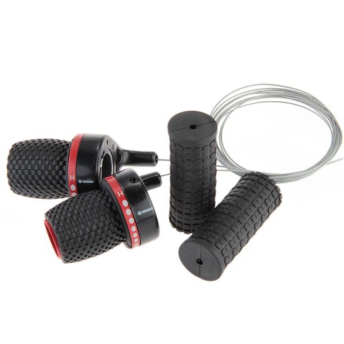 2 Poignée Tournante Manette de Vitesse + 2 Embout Noir pour Vélo VTT Bicyclette