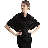 Ferand - Poncho en Fourrure de Lapin Tricoté...