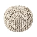 Homescapes Pouf Tricoté Blanc Cassé 100%...