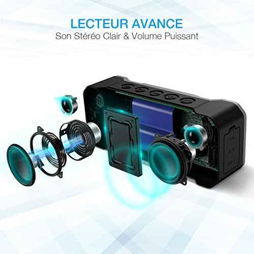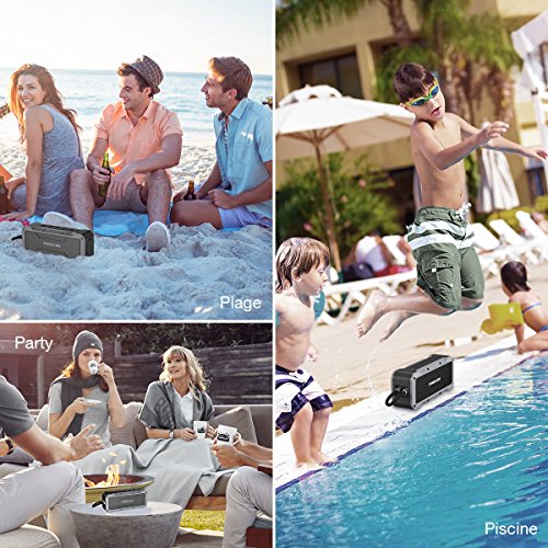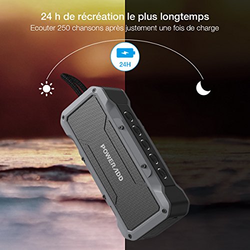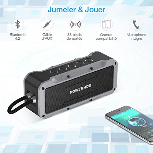 POWERADD Musicfly Enceinte Bluetooth Etanche Haut Parleur Portable Basse Perfomante Niveau Imperméable IPX7 Connexion Sans Fil et Câble AUX avec Fonction Main Libre pour Android, iPhone et Autres Appareils Bluetooth