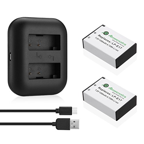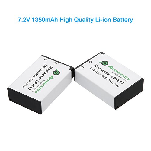 Powerextra Lot de 2 Batteries Canon LP-E17 1350mAH et Chargeur à 2 Batteries USB Pour Canon EOS Rebel T6i, Rebel T6i, Rebel T7i, 750D, 760D, 8000D, Kiss X8i, 800D, 77D, 200D, EOS SL2 M3 M5M6