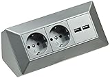 2-fach Steckdosenblock + 2x USB, silber 250V~/...