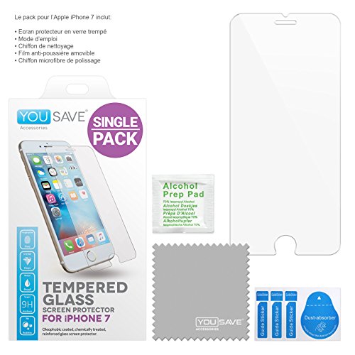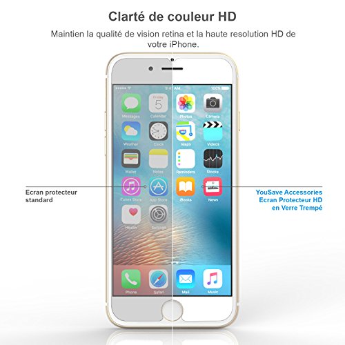 IPhone 7 Protecteur d’écran [Paquet de 2], de Yousave Accessories [Verre Trempé] [Compatible Avec 3d Touch] Epaisseur de 0.3mm / Classement de dureté 9H