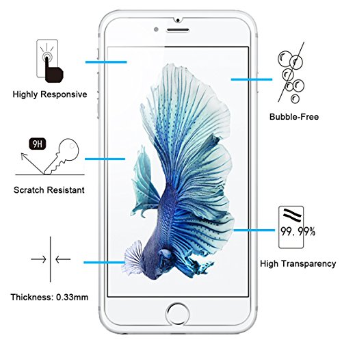 - ATTENTION: Cet article n'est pas compatible avec les téléphones iPhone 6, 6S (4.7") Fabriqué en verre trempé premium haute qualité avec 0,25 mm épaisseur avec les bordures arrondis, Solution idéale d'anti-casse: Extrêmement haute dureté, protège l'écran du téléphone des chocs et des dommages accidentels
