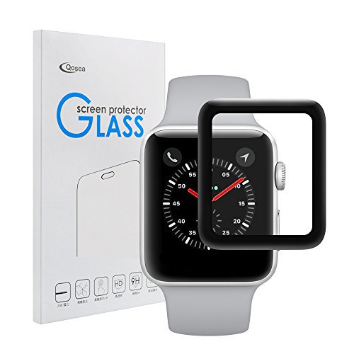Protection écran pour Apple Watch Series 3 42mm, Siuber Ultra Clair et Résistant Film Protecteur D'écran en Verre Tempéré, Haute Transparence et Ultra Slim Dureté 9H Verre Trempé écran Protecteur pour Apple Watch Series 3 42mm(Noir)