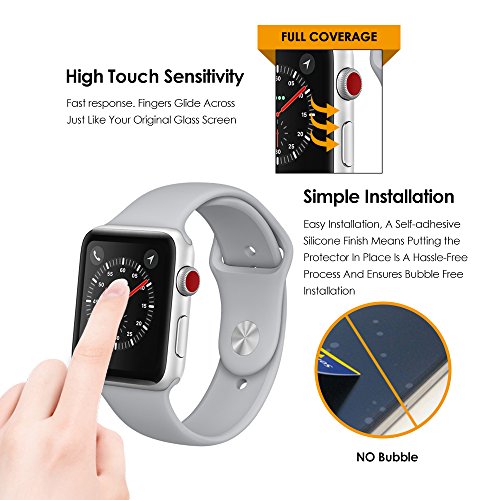 Couverture complète Trempé écran de protection en verre est fabriqué avec une haute technologie de découpe laser pour protéger vôtre Apple Watch Series 3 42mm écran des chocs et des rayures par efficacement à absorber l'impact.