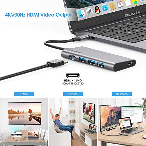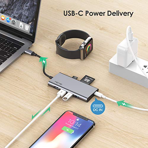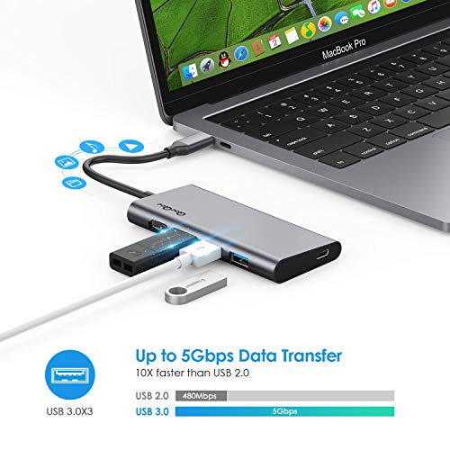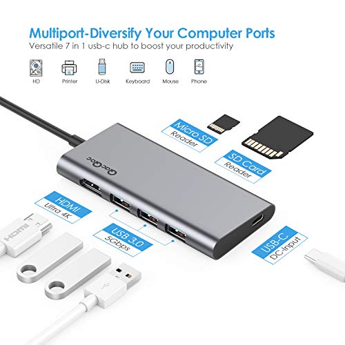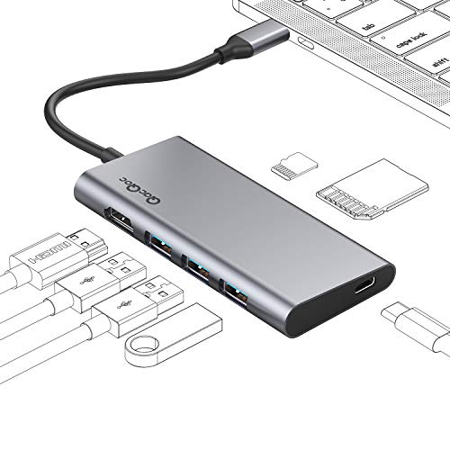 QacQoc Hub USB C Type-C 2018 vers 3 Ports USB 3.0, 1 Port de USB Type-C (PD),2 lecteurs de SD et Micro SD, Slot HDMI, pour MacBook Pro,MacBook Air,Google Chromebook