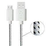 Qingsun USB Data 2M Nylon Tressé Chargeur Câble Cordon ligne de données pour Samsung Galaxy, HTC et autres Smartphones Android(Blanc)