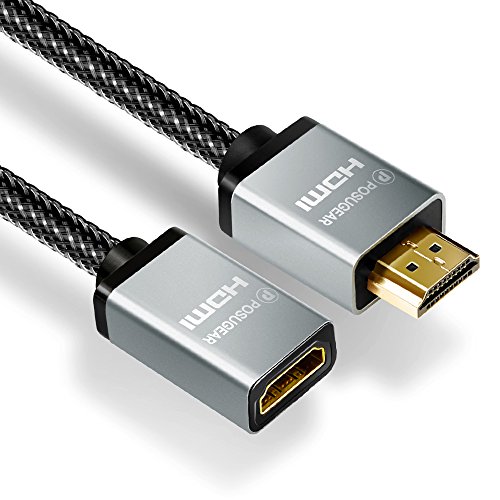 Rallonge Câble HDMI 1M, Posugear Nylon Tressé Câble d'Extension HDMI Mâle Femelle compatible avec HDMI 2.0a/b, 2.0, 1.4a (Ultra HD, 4K, 3D, Full HD, 1080p, HDR, ARC, Highspeed with Ethernet)-Connecteurs Plaqués Or