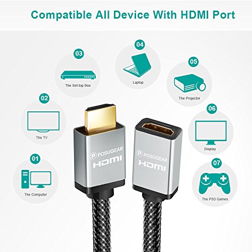 - Contenu de l'emballage: 1x 1m Posugear Câble rallonge HDMI 2.0 mâle vers femelle, Garantie de 18 mois et service clientèle amical.
