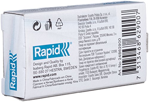 - Contenu : 1 x Boite (1000 pièces) d'agrafes Rapid 10/4, 24862900, Dimensions lxhxp: 13 x 28 x 53 mm, Poids : 22g