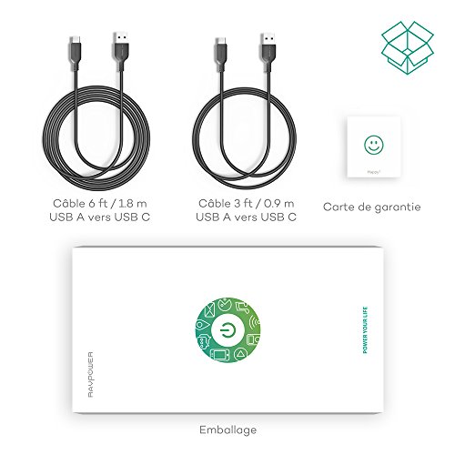 1 x RAVPower Câble de recharge USB A vers USB C 6 ft / 1.8 m