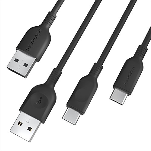 Câble USB C Lot de 2 RAVPower Câble de Charge Chargeur Type C Câble d'alimentation pour Appareil Type-C MacBook 12", Chromebook Pixel, Samsung Galaxy S8 / S8+, Google Pixel - Noir